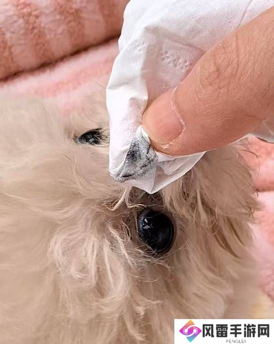 “我接到狗狗之后,发现眼圈附近的毛有点黑,我当时就觉得不对劲。仔细看,发现狗狗的眼线往外浸染开来了。我拿湿纸巾给狗狗擦外眼眶,发现有黑东西,原来店家给狗狗画了内眼线和外眼线,而且眼线还是防水的。”