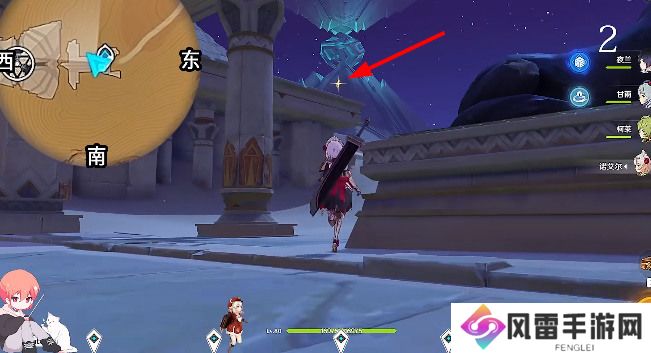 2、能够看到下图的区域西北方向走,传送光点,跟着走。