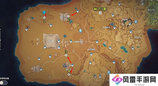 原神金蔷薇种子位置大全分享:四棵种子分布图:
