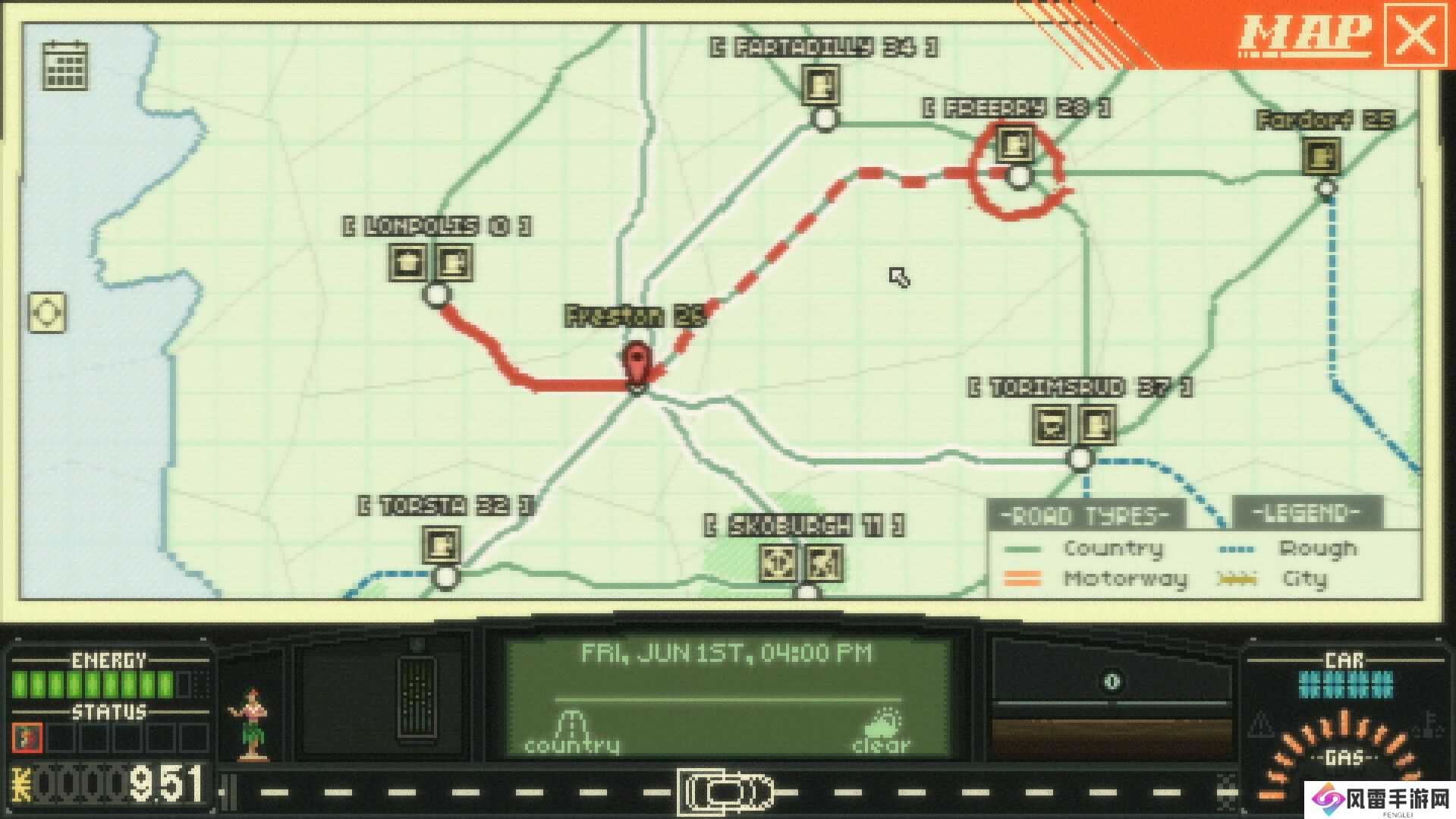 《Keep Driving》是一款管理玩法的角色扮演游戏,你将在程序生成的像素开放世界缓慢前进。结识形形**的便车乘客,了解他们各自的性格和故事,同时升级、改装、维修你的爱车。独特的回合制“战斗”系统让你能够运用自己的能力和手套箱里的东西克服路上一道又一道难关。