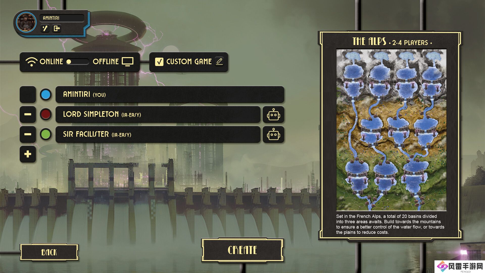 本作中玩家将拥抱技术进步,在回合制策略游戏中建立你的水电帝国。玩家将竞争建造宏伟的水坝,利用流水的力量,带领自己的阵营走向胜利。