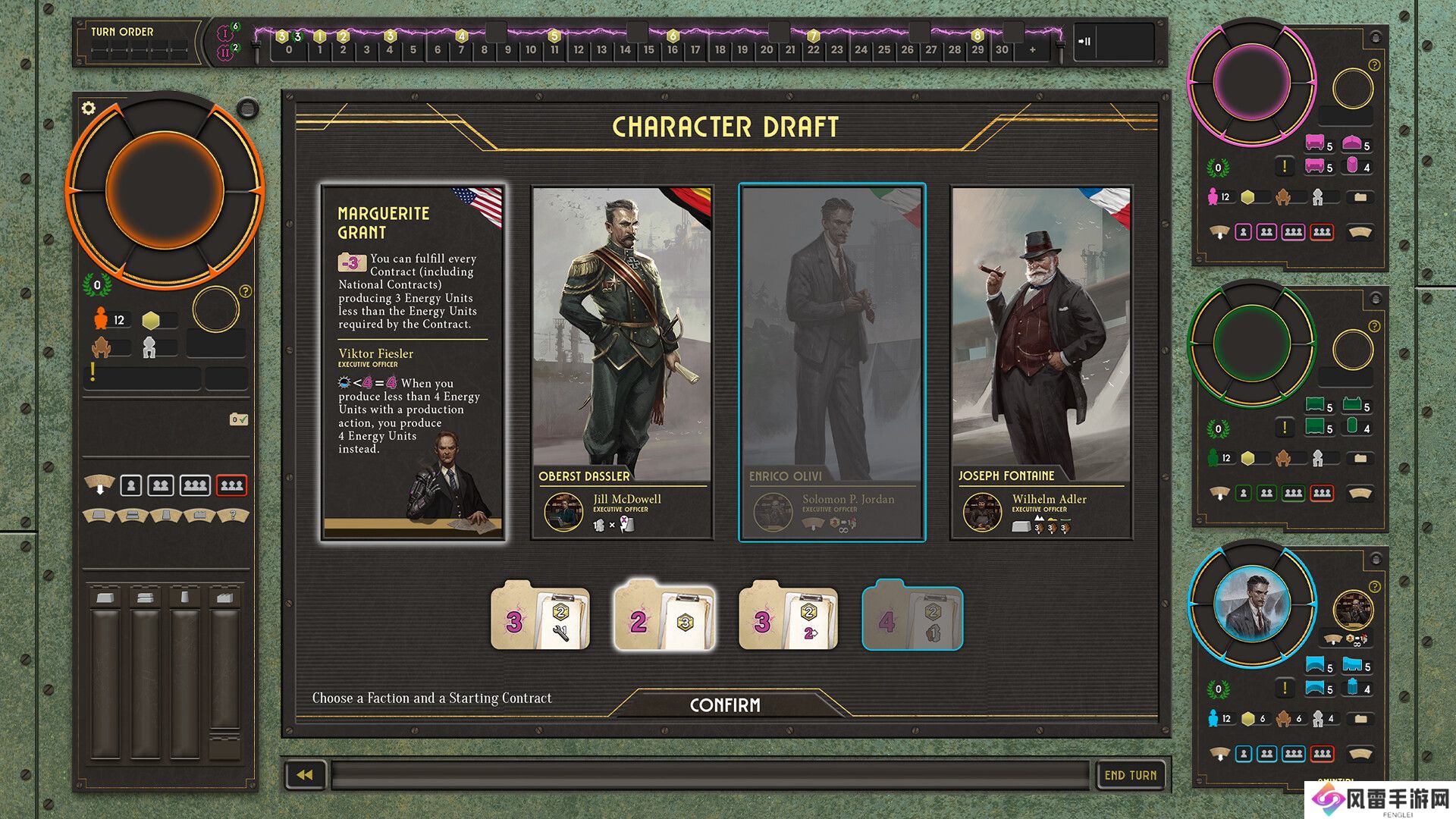 除此之外,CEO们由执行官(XO)协助,这些帮手十分有用,会对游戏进程有重大影响,并促使玩家采取风格各异的游戏策略。尝试组合不同的CEO和执行官,找到最适合你的,或者在游戏开始时随机轮抽,让游戏进程更加难以预测。