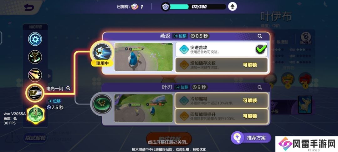 但如果是敏捷型宝可梦,就要注意机动性的配招,以及和队友的配合。例如叶伊布就用飞叶快刀和燕返,这两个都是利用机动性的,单体输出不足必须和攻击型队友配合。