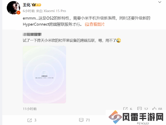 王化回应小米互联无法使用:澎湃OS2的新特性 需要升级手机系统