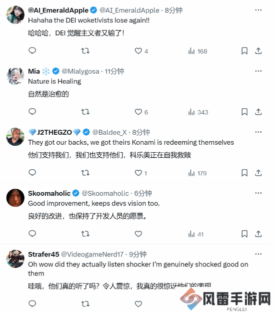 这一变化迅速引发了网友热议。部分网友积极评价此次调整,有人留言道:“这才是正常的女性外观!”“哈哈,‘觉醒活动家’又输了!”“科乐美挺我们,我们也挺他们,这才是赢回玩家信任的路。”甚至有玩家认为此调整不但迎合了玩家审美,还“符合开发者的原始设想”。