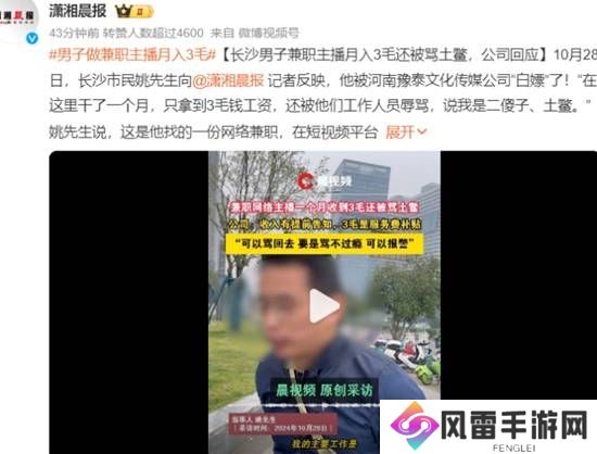 男子做兼职主播月入3毛 还被工作人员骂土鳖