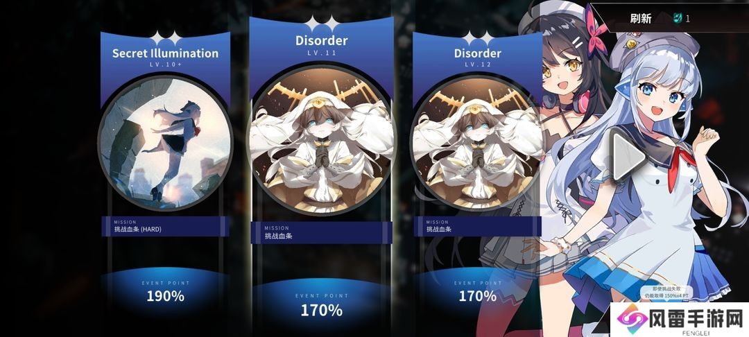 玩家每日可以消耗次数(挑战次数2.5小时回复1次,最高可存储3次,同时还可以花费100星钻立刻获得3次挑战次数),挑战随机乐曲获取PT点数,累计足够的PT点数可以获得乐曲奖励,购买曲包还能在活动中获得驾驶员鸠+伊洛。