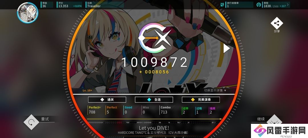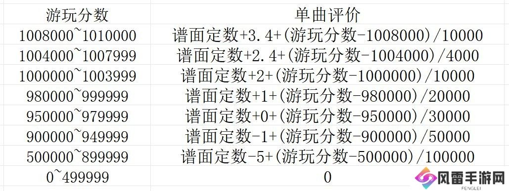 此外,如果游玩的结果为Fail,则单谱Rating至多为6.0 (取上述公式计算结果与6.0中较小的值)。