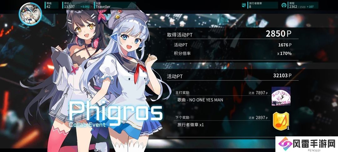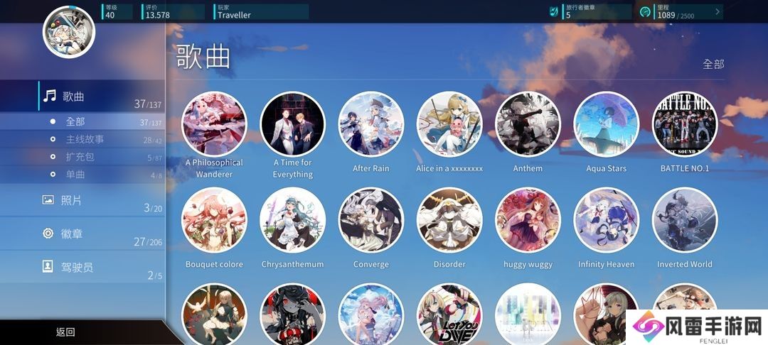 玩家游玩任意乐曲都可以累计里程,使用里程解锁故事点,探索剧情和各种奇奇怪怪的挑战,获取徽章和乐曲奖励。还可以消耗里程左边的旅行者徽章来解锁回忆和图片。更有隐藏乐曲作为Boss等着你。