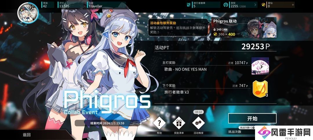点击开始以选择乐曲,如果对乐曲不满意,可以使用旅行者徽章刷新乐曲,如果想尽快获得奖励,可以使用星钻获得600%的PT奖励。