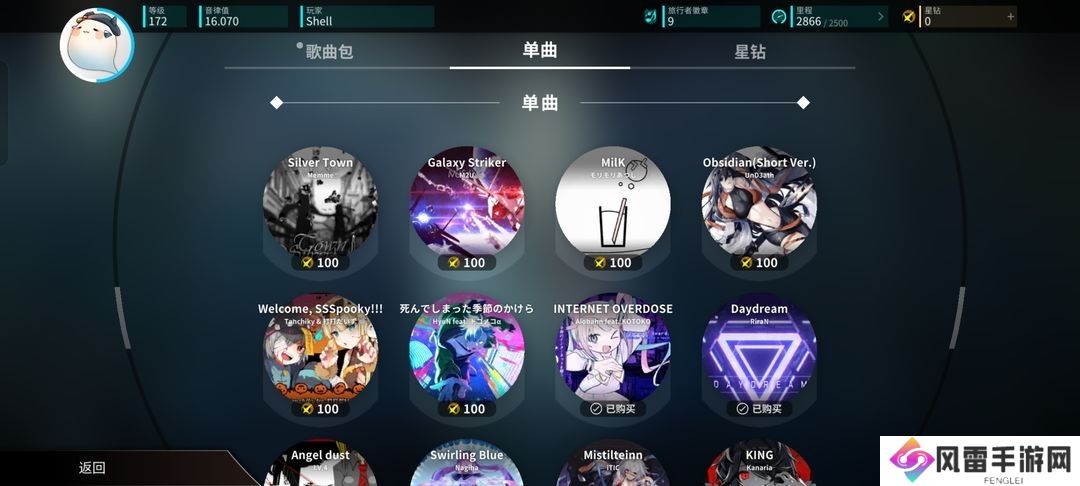 游戏付费内容以歌曲为计量单位计算,一首歌曲的价格为100星钻。内购系统拥有曲包和单曲购买选项,一份曲包含有5-7首乐曲,所以曲包价格500-700星钻。