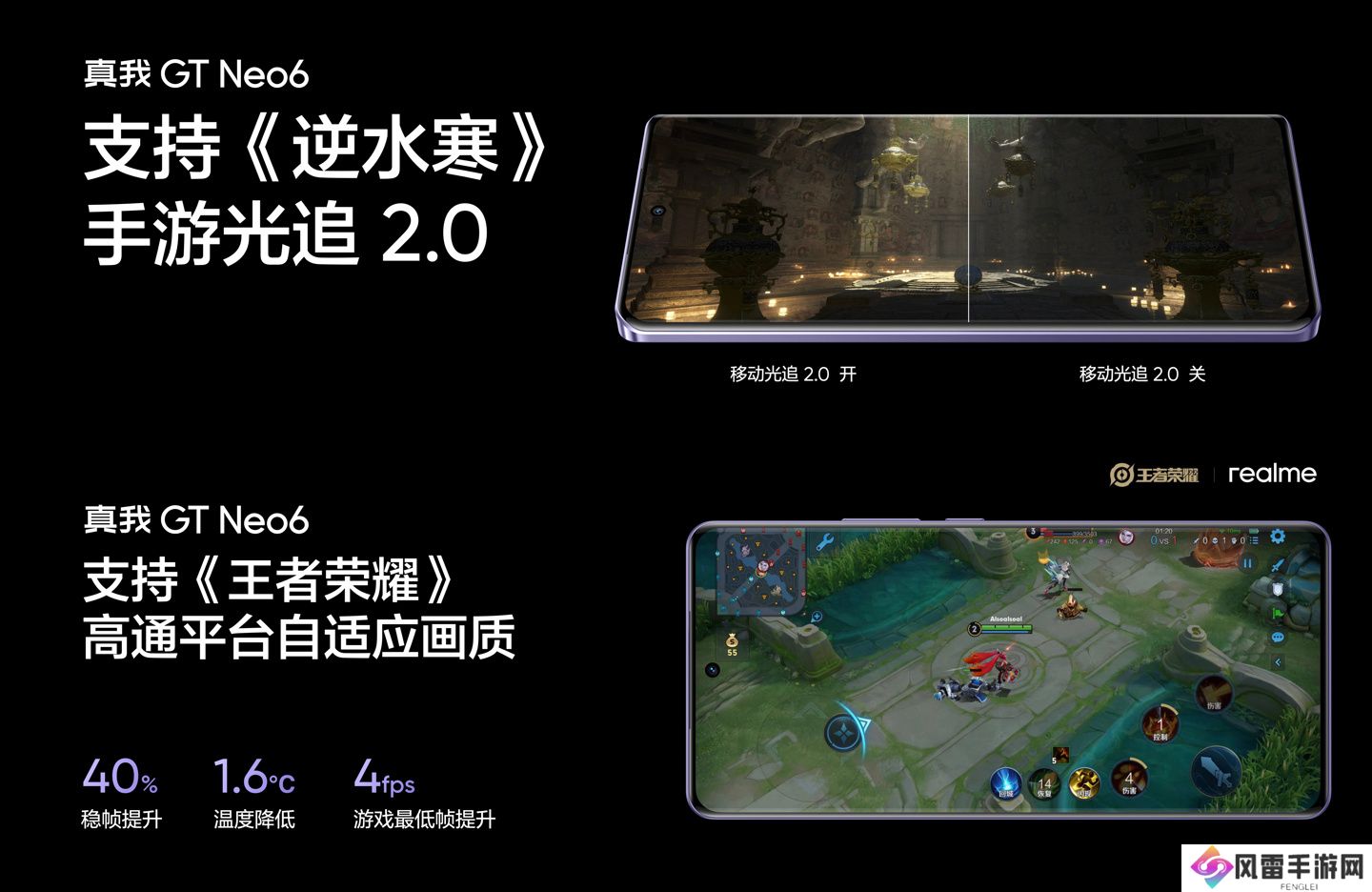 官方公布数据显示,该机测试《王者荣耀》120 帧 + 极致画质平均帧率 120.1,最高温度 43℃;《原神》60 帧 + 极致画质:平均帧率 59.85,最高温度 42.5℃。