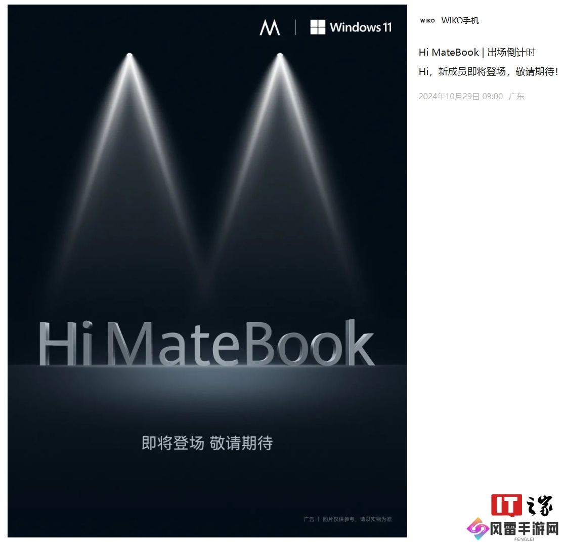 本站 10 月 29 日消息,唯科 WIKO 今日发文官宣,旗下新品 Hi MateBook 系列笔记本“即将登场”,预热海报显示,新品将采用 Windows 11 系统。