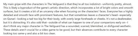 ·艺术指导给某些角色营造了一种怪异的感觉(评测者表示是角色面部太光滑细腻,而且脑袋都很大),并扰乱了某些场景或故事情节的氛围