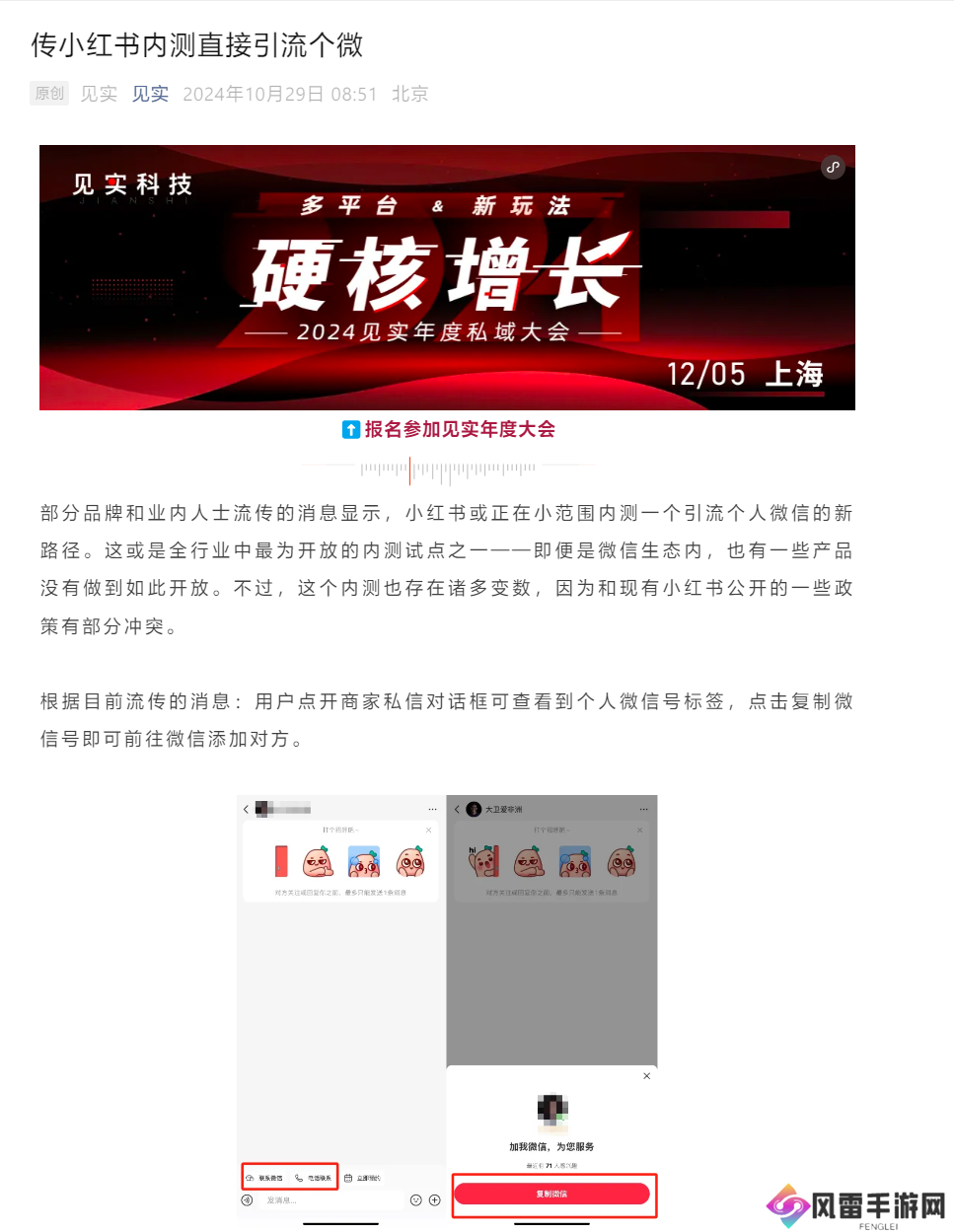 消息称小红书正小范围内测直接引流个人 / 企业微信,将成全行业最开放内测试点
