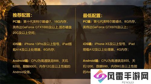 《黑光生存进化》有着经典的生存沙盒玩法框架,同时采用虚幻5引擎制作,带来了令人震撼的视觉体验。此次不付费删档测试为iOS、安卓双平台测试,为保证获得最佳游戏体验,建议玩家使用以下机型进行游戏,如设备性能不足,也可以下载《黑光生存进化》PC端进行游玩,尽情享受这场魔幻沙盒冒险之旅。