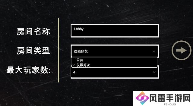 设置房间名称,房间类型(勾选仅好友)以及房间最大人数(2-4人),下一步;