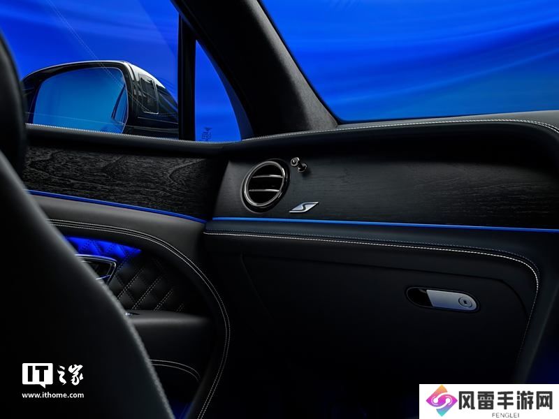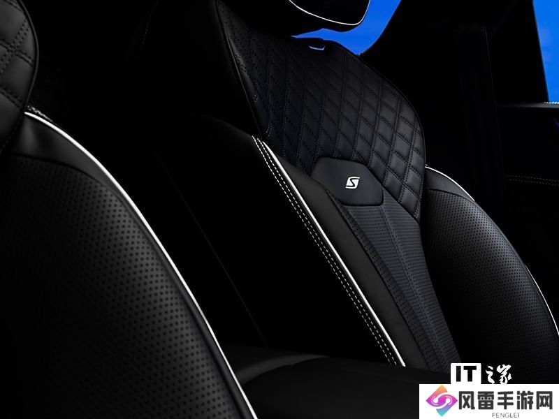 内饰方面,中控台和门板等处饰有蓝宝石色饰条,并可选配蓝色氛围灯,与外观相互呼应。内饰主色调为黑色,搭配少量白色缝线与滚边装饰,座椅采用菱形缝线设计,进一步增强了豪华氛围。此外,车内还配有专属 S 车型的金属铭牌,彰显其特别身份。