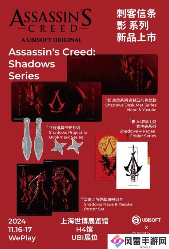 心存信条,行如刺客!育碧也将携Fancores联名刺客信条热销产品及《刺客信条:影》的多款新品来到Weplay。快来将心怡的刺客信条周边带回家,尽显刺客风采!
