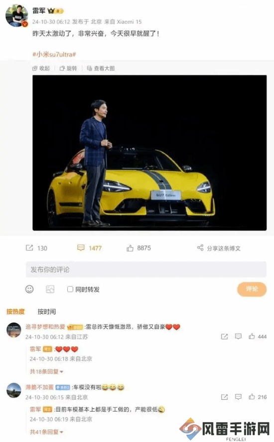 雷军回应小米SU7 Ultra车模秒售罄:产能很低