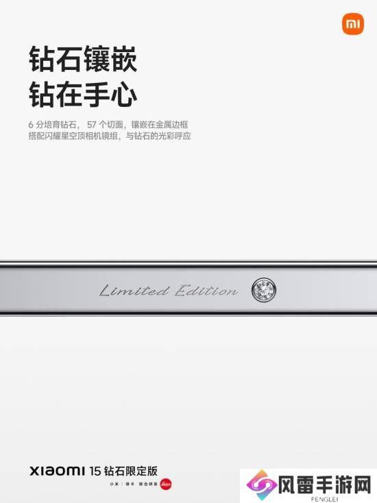小米15钻石限定版售价5999元 侧面镶嵌了一颗人工钻石