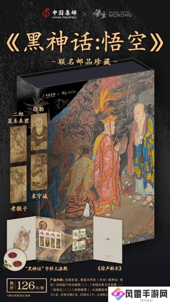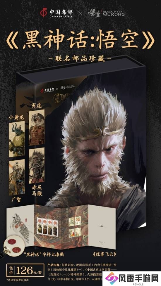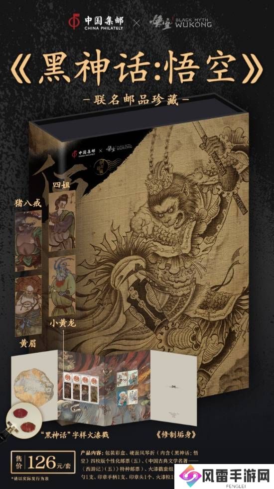 微博@中国邮政今日中午正式官宣,中国邮政与《黑神话:悟空》的联名系列邮品即将上线。让经典游戏角色从“黄风岭”“小西天”跃然纸上,酷炫国风大片定格于方寸瞬间。放马西行,直面天命,五款联名邮品《绕雾飞云》、《徐声韵长》、《行沾清味》、《思虑成妄》、《修制诟身》将于11月1日14:00开启预购,每套售价126元。