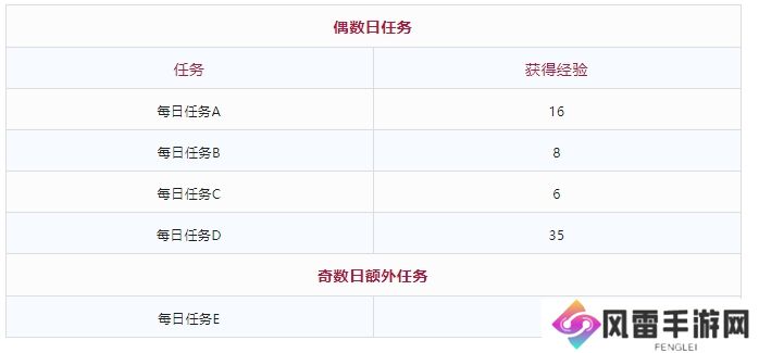 通过完成每日任务,每个奇数日可获得58经验,每个偶数日可获得43经验,完成剩余4天每日任务共可获得202点编年经验。