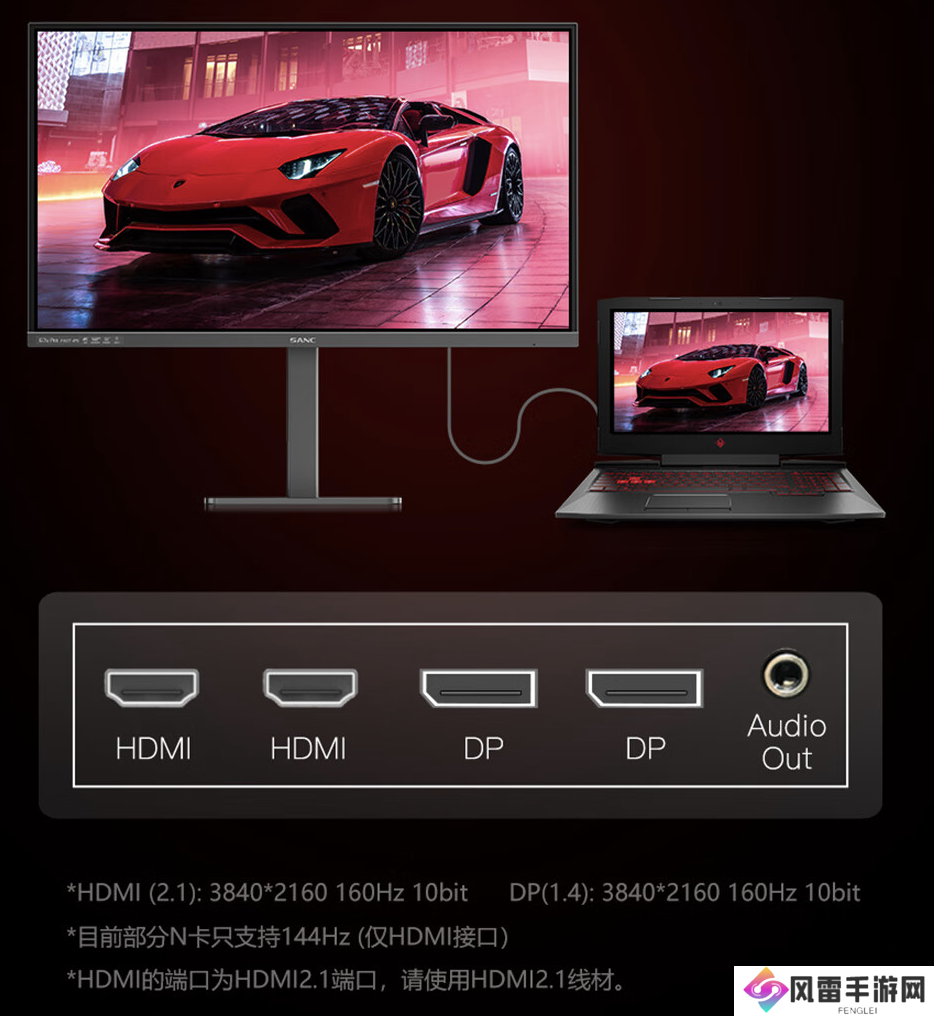 此外,这款显示器支持旋转升降俯仰,配备2 个HDMI 2.1 接口、2 个DP1.4 接口、1 个3.5mm 音频接口。