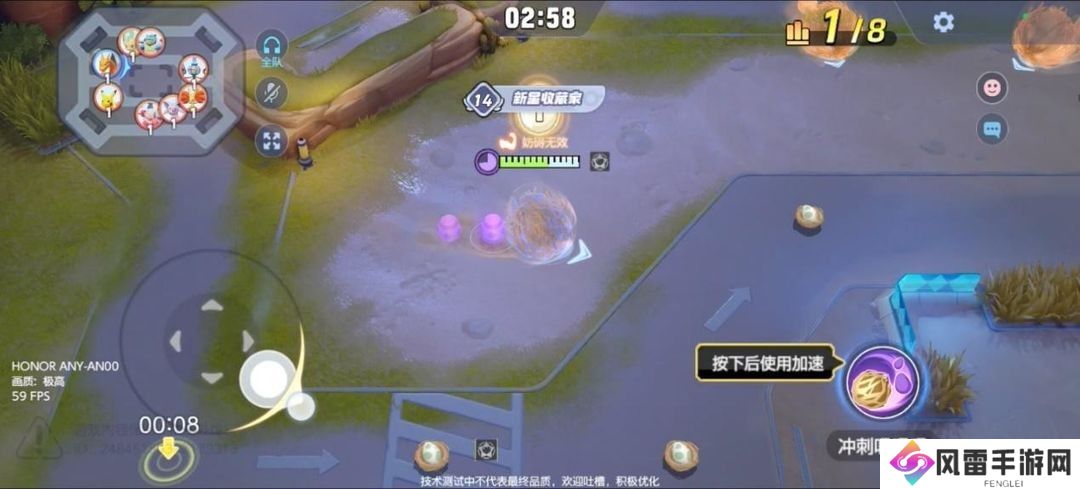 接下来简单给大家介绍一下地图,下图的左上角就是地图全貌啦,我们在开局时会变成一个草团的形状,这个时候的我们在向前滚时是不受任何妨碍的。