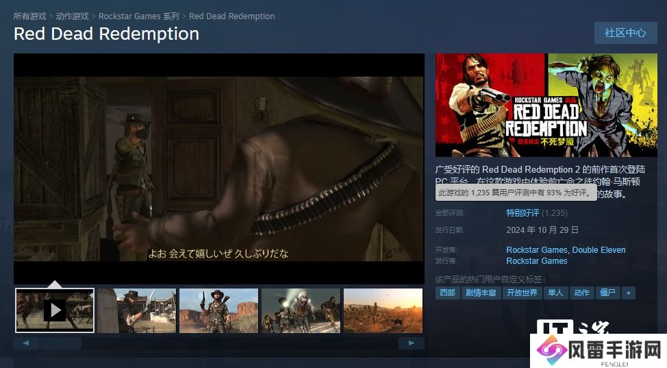 本站 10 月 30 日消息,《荒野大镖客:救赎》已在 Steam 平台上发售,国区定价为 249 元。该作目前在 Steam 上的总体评价为“特别好评”,93% 的玩家给出了好评。许多玩家认为这款经典游戏的体验经久不衰,同时在优化方面表现出色,不是粗暴的移植。