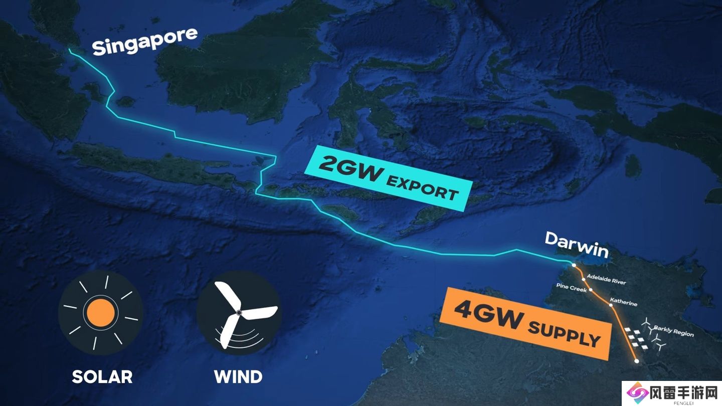 这 6GW 的电力将首先通过 800km 的路上电网传输至北领地首府达尔文,其中 4GW 用于支持当地工业发展,另外 2GW 则通过澳大利亚-印度尼西亚-新加坡的洲际海底电缆向新加坡出口。