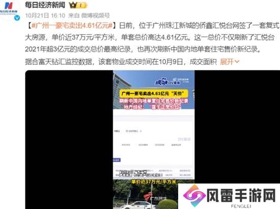 广州一豪宅卖出4.61亿元 刷新中国内地单套住宅售价新纪录