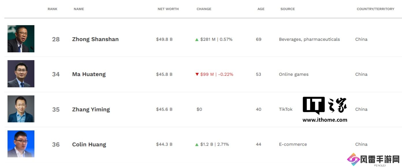 本站 10 月 29 日消息,福布斯实时富豪榜显示,钟睒睒当前的财富值为 503 亿美元(本站备注:当前约 3589.27 亿元人民币),马化腾、张一鸣、黄峥紧随其后。