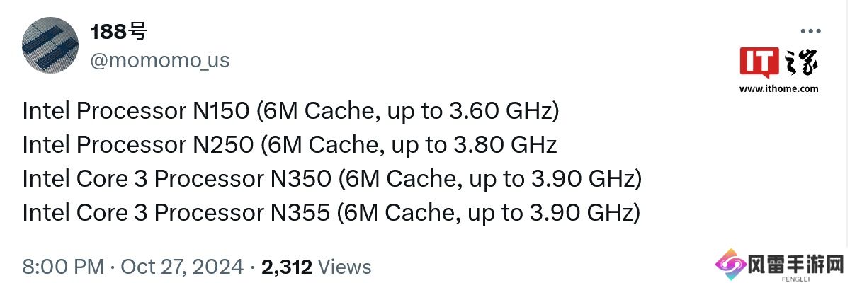 本站 10 月 30 日消息,X 平台消息人士 188号 (@momomo_us) 本月 27 日表示,英特尔即将推出 4 款 N 系列全能效核处理器。本站从外媒 FanlessTech 处获悉,这四款新品代号为 Alder Lake-N Refresh。