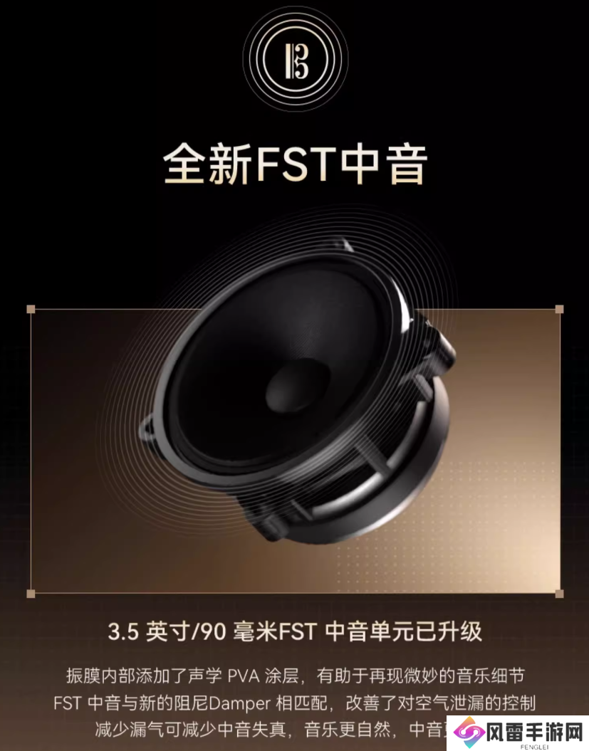 据介绍,该音箱采用“三声室”箱体设计,配备三段式“蜂窝”前网罩和悬浮对称式连接结构,拥有1 英寸 / 25 毫米钛膜球顶高音单元、3.5 英寸 / 90 毫米 FST 中音单元、长冲程6 英寸低音单元。