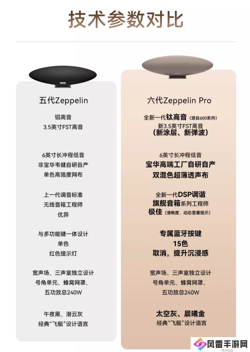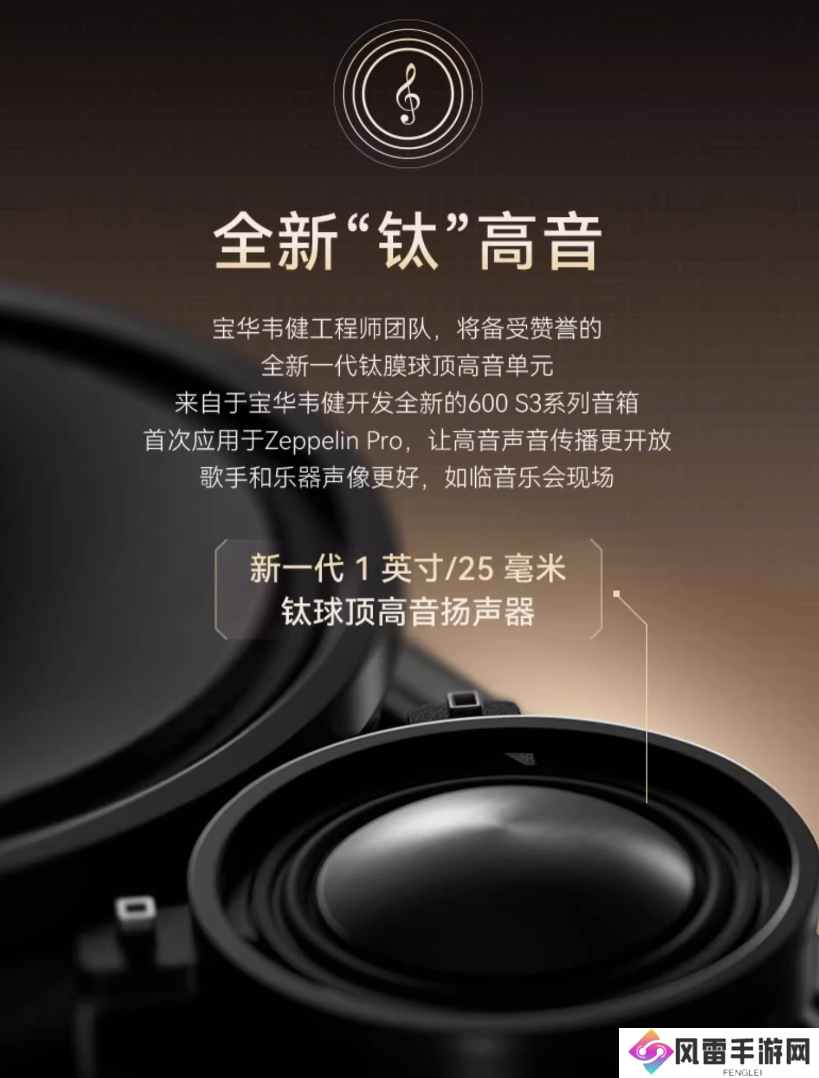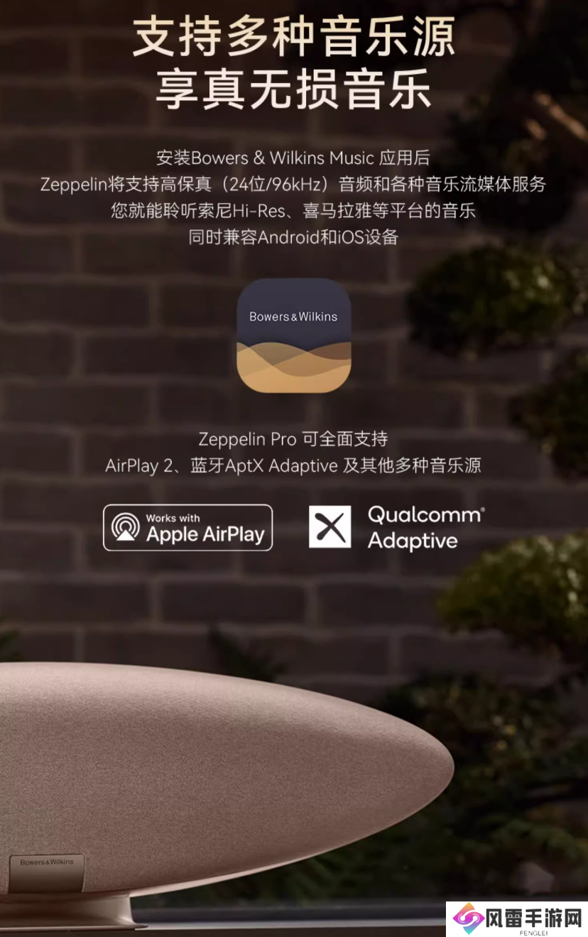 宝华韦健・第六代飞艇 Zeppelin Pro 无线蓝牙音箱发售于 2024 年 9 月,该款音箱支持 96k / 24bit 传输,接入苹果 AirPlay 2 播放协议,官方定价 5480 元。