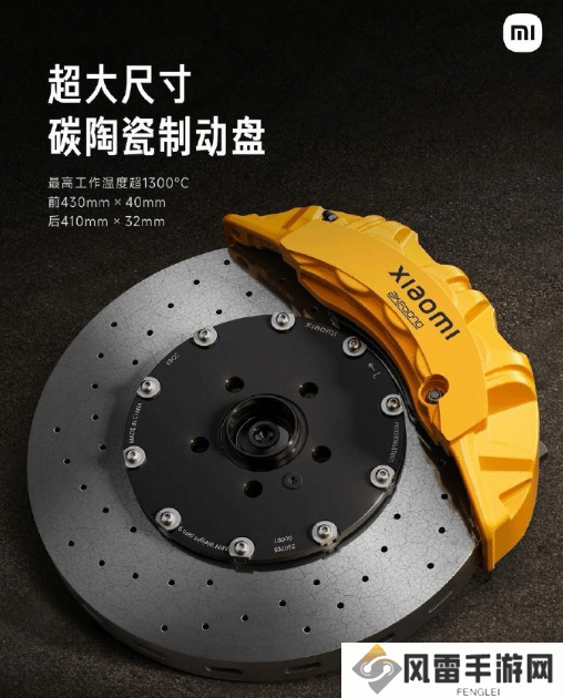 据了解,搭载碳陶刹车盘的小米SU7 Ultra据称最高工作温度超1300℃,尺寸为前 430mmx40mm,后 410mmx32mm,是“跑车中尺寸最大的”。