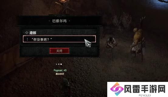 1、首先玩家是需要先来到巴雅尔玛这里,到达后是进行对话,随后是将额尔登的遗骸带给法罗布鲁的耶什!