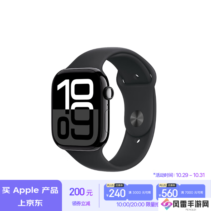 京东苹果 Watch Series 10 智能手表 GPS 款 46 毫米亮黑色铝金属表壳 + 黑色运动型表带 PLUS 专享 240 元券券后 2759 元领 200 元券