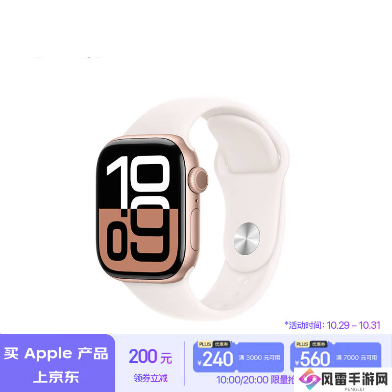 京东苹果 Watch Series 10 智能手表 GPS 款 42 毫米玫瑰金色铝金属表壳 + 淡桃粉色运动型表带 PLUS 凑单减 240 元券后 2799 元领 200 元券