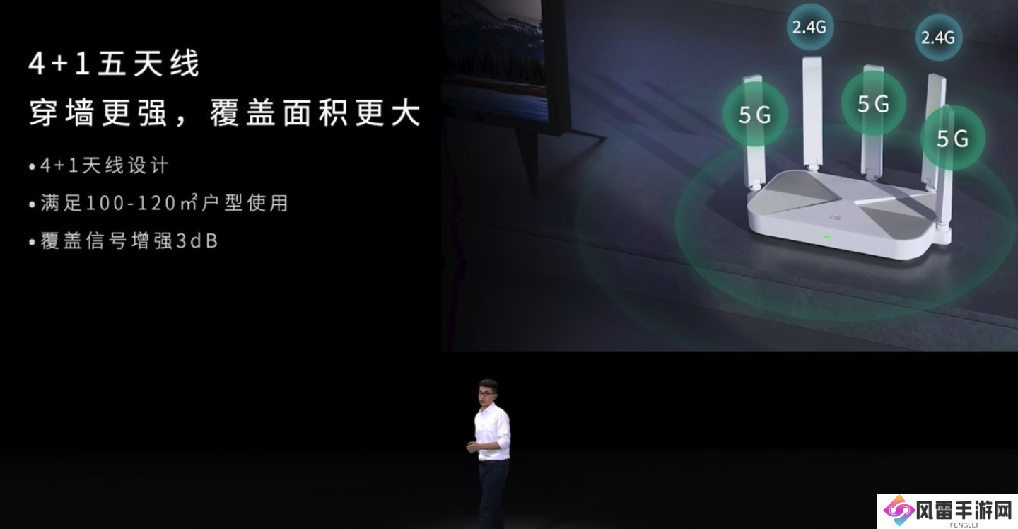 该路由器支持160MHz 频宽,3000Mbps 速率,采用 4+1 五天线设计,可以覆盖到100-120 平的中大户型。