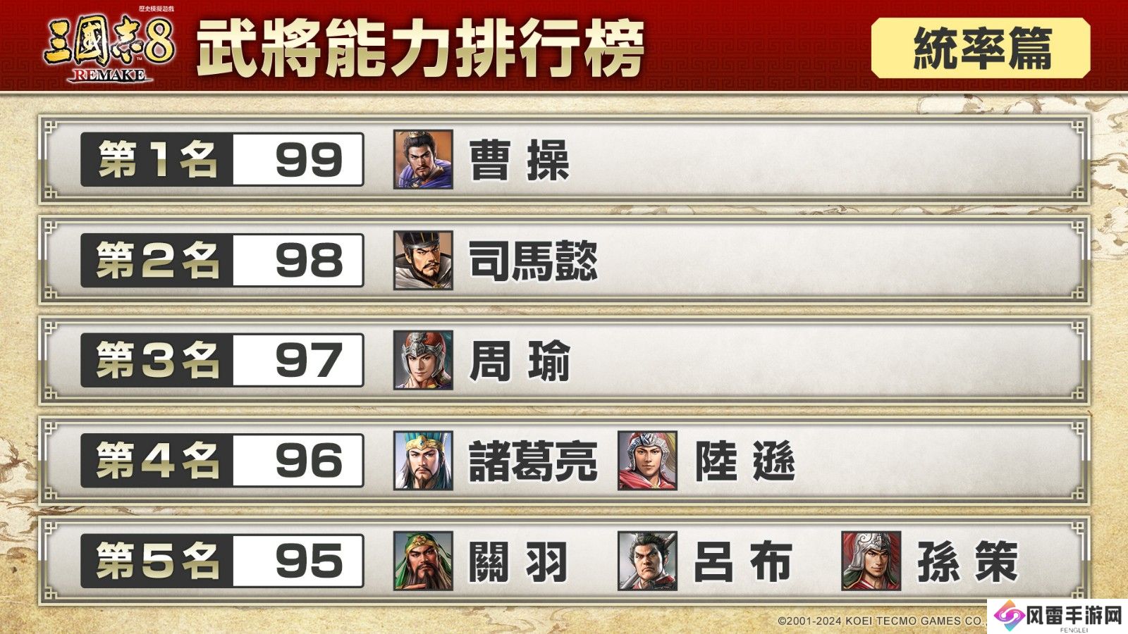 《三国志8重制版》武将能力排行榜 你想拥有哪位武将?