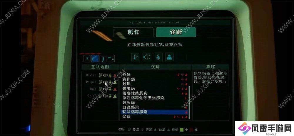 再者是游戏内指引很弱,很多时候玩家会不知道该干什么,比如动物很多的时候抽血与清理**物会非常麻烦。如果找不到哪只动物还没有抽血,那样就可能会卡关;然后如果你想要走一个比较好的结局,那么就不能击杀动物,如果不击杀动物,那就必须制作药物来治愈它们,而制药的这个过程也是非常缺乏指引,几乎要靠玩家们一点一点去尝试这个过程也是比较大折磨。