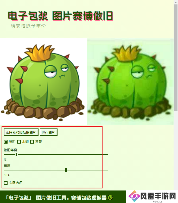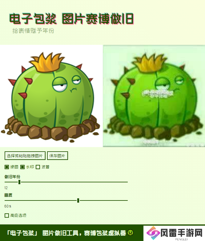 电子包浆生成器是什么?电子包浆生成器是一个可以将高清图片一键制作成怀旧渣画质的工具,通过这个工具做的包浆图片很适合做表情包,选择一张适合的图片,变成包浆画质,再配上文字,做表情包简直完美!有了这个工具之后大家可以自己来制作,超简单!