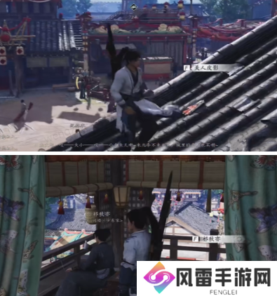 4、爬上屋顶就可以找到这个美人皮影,捡起后交付给npc然后这个任务就可以做好了。