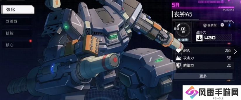 2、丧钟。作为sr机甲,在类型上属于强袭型,因此在战斗场景上能够给予玩家很多战斗上的技能,而且sr机甲在卡池中抽取概率较高,玩家是很容易获得。那这款机甲能在游戏前期帮助玩家迅速推图。