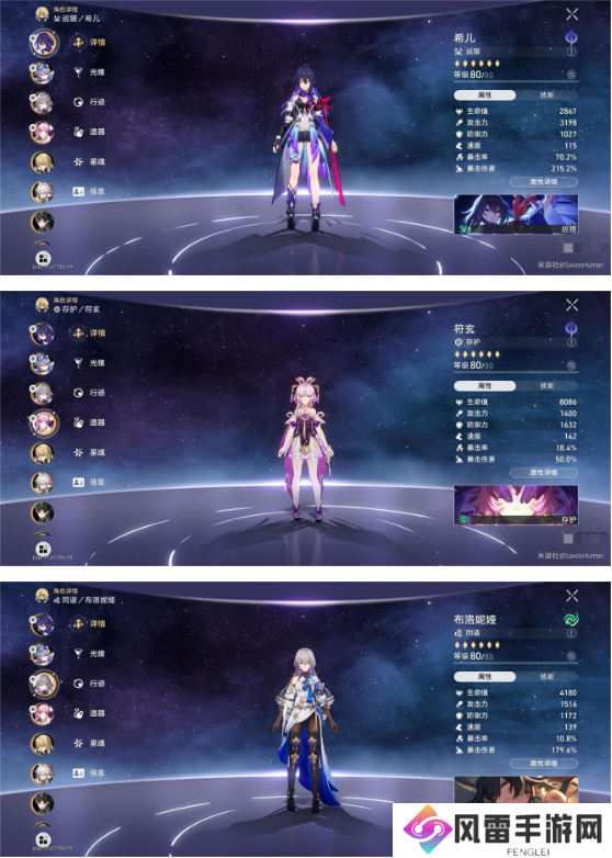 本期混沌回忆的buff相较于上期,对于希儿饮月君的加成稍微有所降低,这次凹混沌上下半都有点缺战技点,由于我没有合适的4过客,上半只能赌一下鸭鸭的1命效果,下半凹暴击,暴击的话可以省下1-2个战技点。