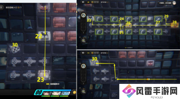 4、先去11区按R键放一个炸弹,走到12区引爆炸弹炸开左边的墙壁,依次去13-16区拿奖励,最后去17区传送。