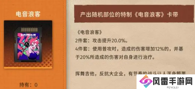 第二套则是电音浪客,这个装载套装则是以增加攻击力为主,首先是两件套会提升20%的攻击力,4件套的时候在使用普攻我们所造成的伤害会增加12%,并且20%的伤害值可以对自身进行回复。