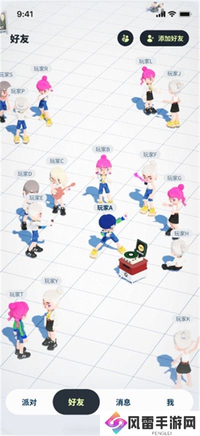 3、好友广场:朋友是派对中不可或缺的元素。点击右上角的“添加好友”,让你的朋友们也出现在你的广场,一同分享欢乐。